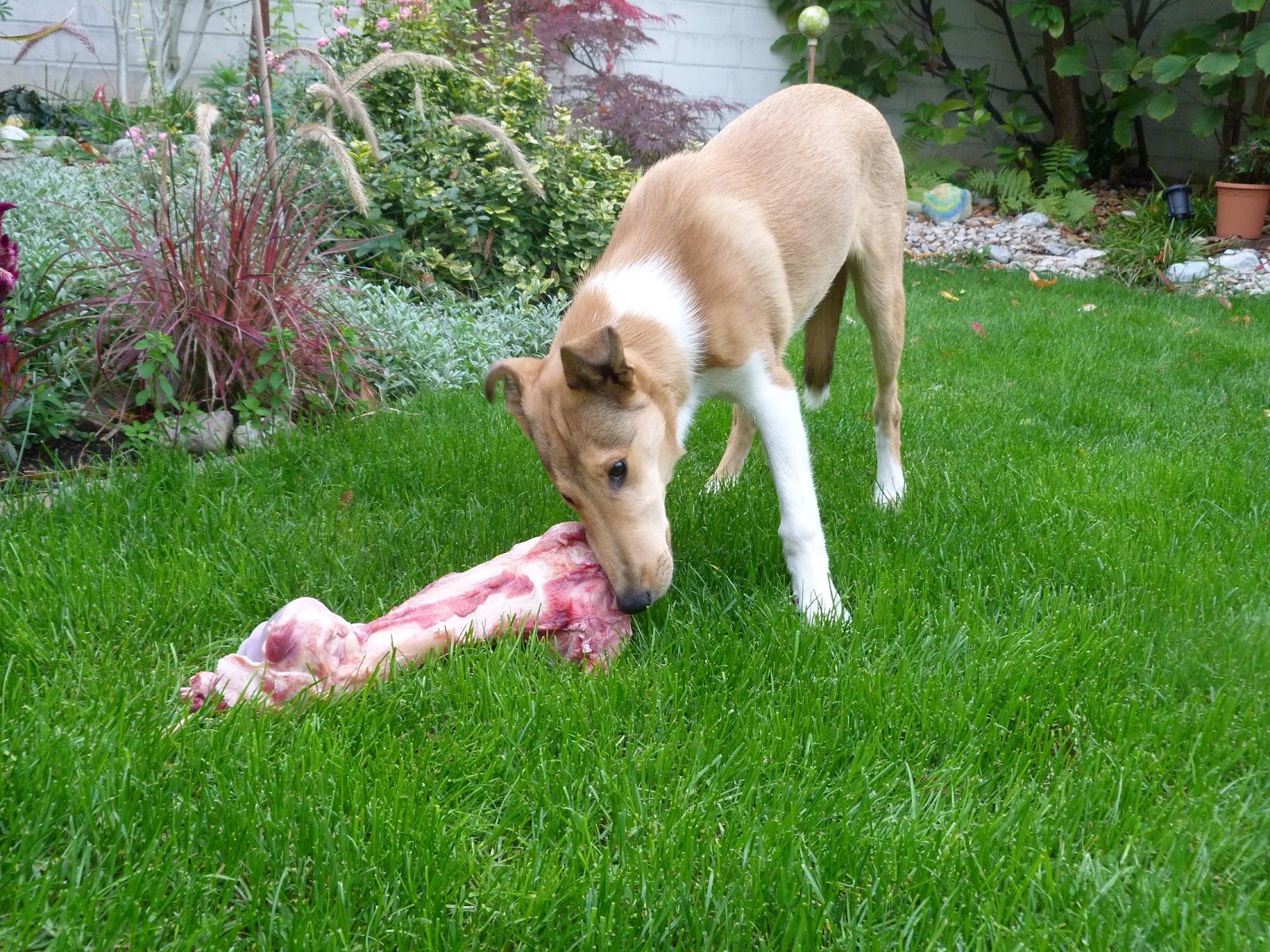 Selbst eine etwas ältere ruhigere Hündin konnte er noch zum spielen motivieren. Er hat auch mittlerweile gar keinen so großen Appetit mehr. 1-2 mal am Tag reicht es. Außer Putenhälse-die könnte er bis zum platzen verschlingen!!!
